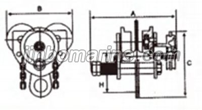 | Model | Capaity(ton) | Proof load (ton) | Minimun revoing radus(mm) | Dimensions(mm) | Fits Beam(mm) | N.W.(kg) | ||||